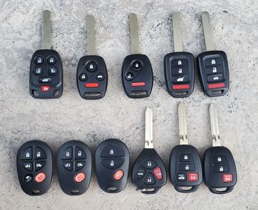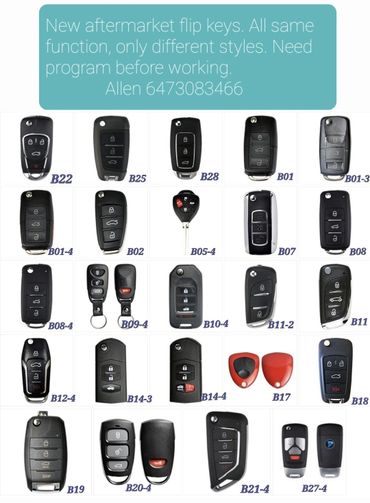 Below is aftermarket flip key options, can be used to replace regular remote key. All same functions, only difference looking. Note: not all in stock, need msg to check availability.